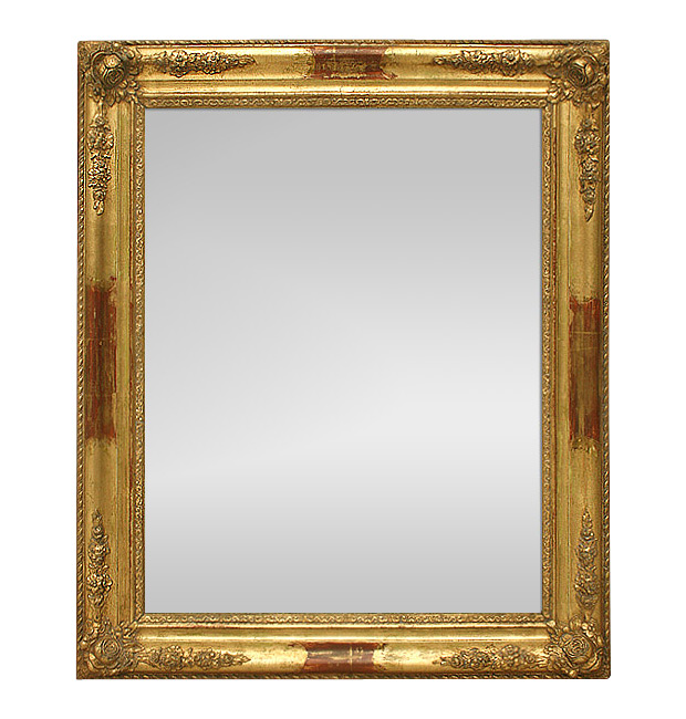 Antique Louis-philippe style mirror gilded with the gold leaf with patinated engraved decorations.